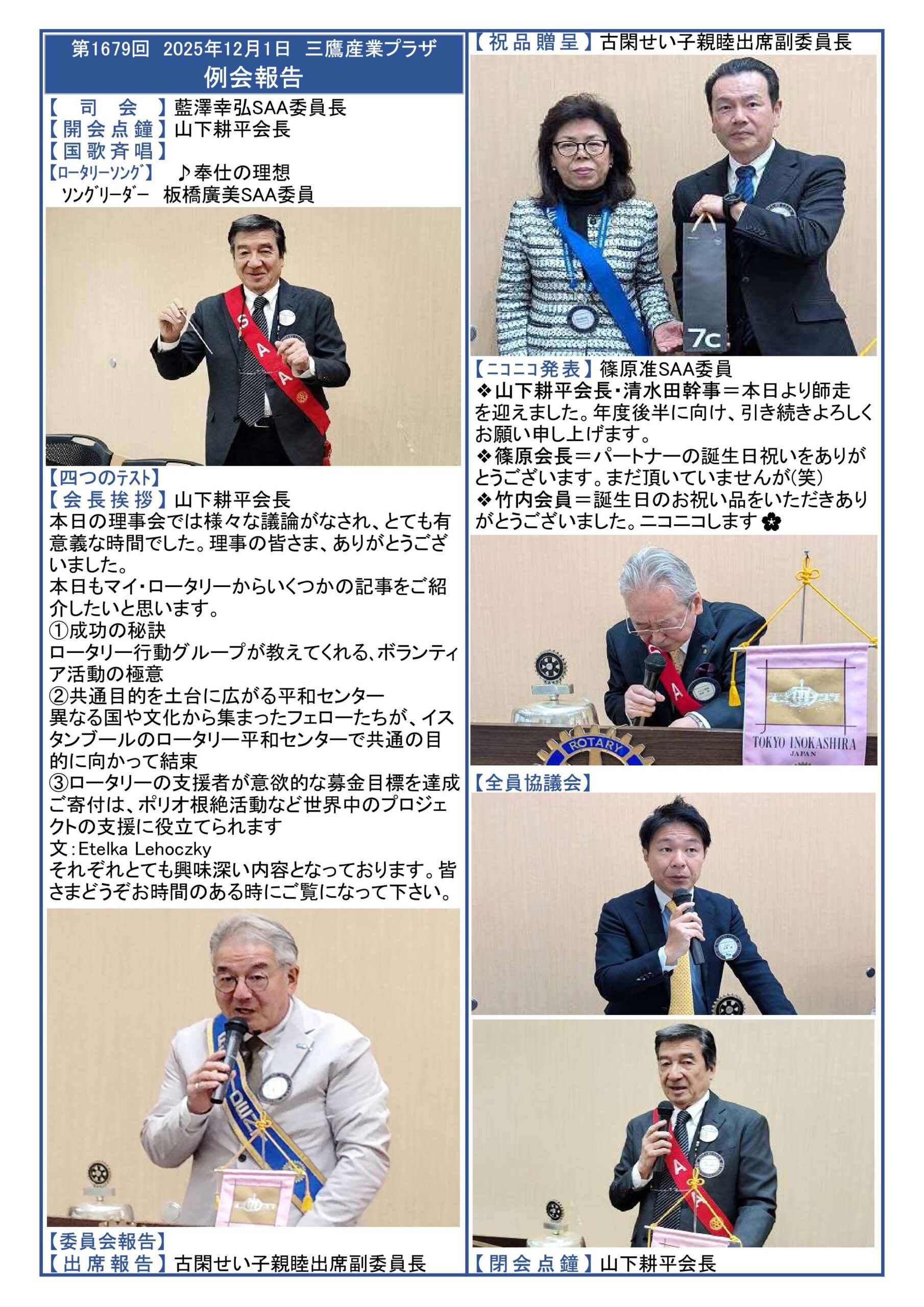 【2025年12月8日発行】2025年12月1日 第1679回例会