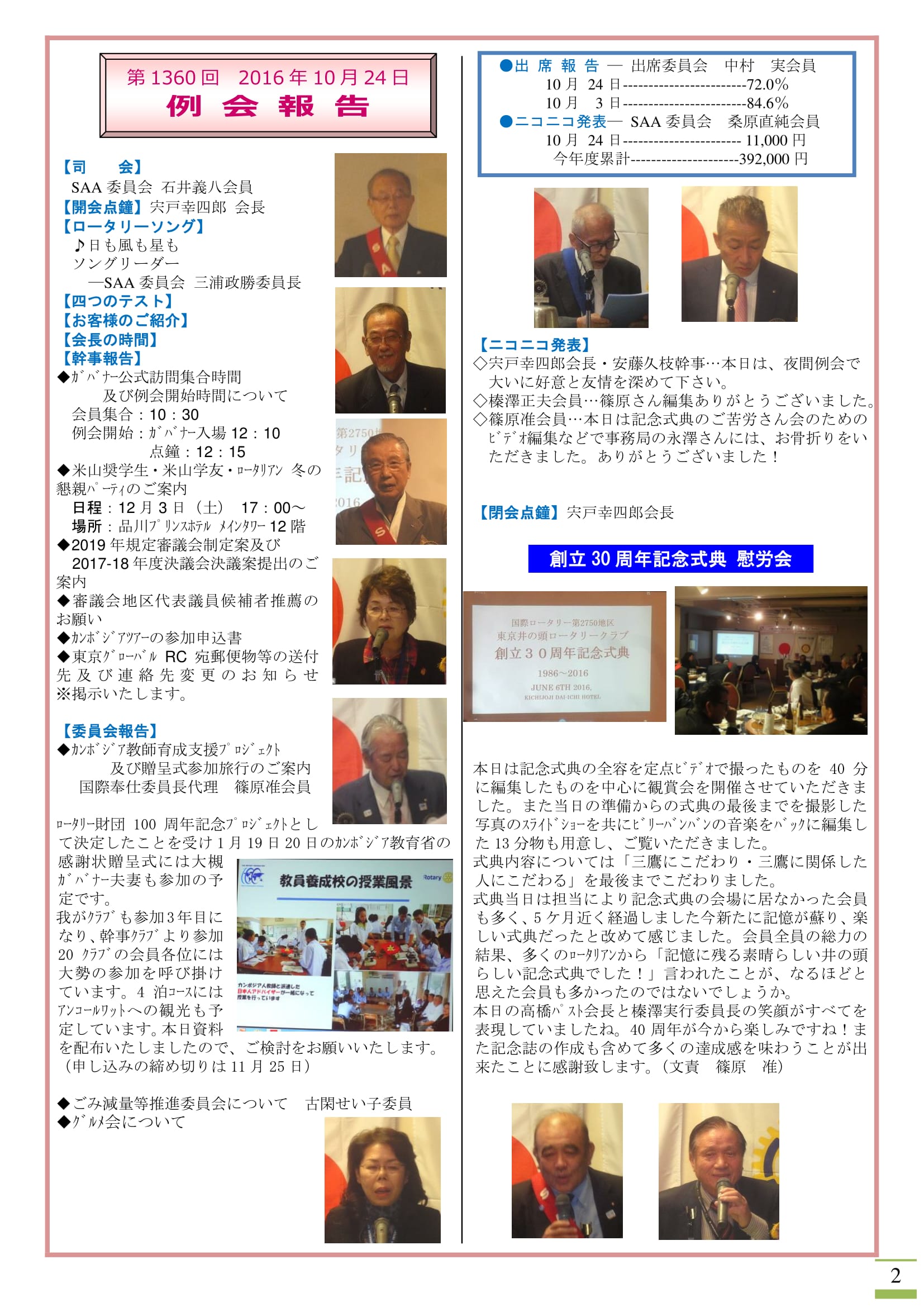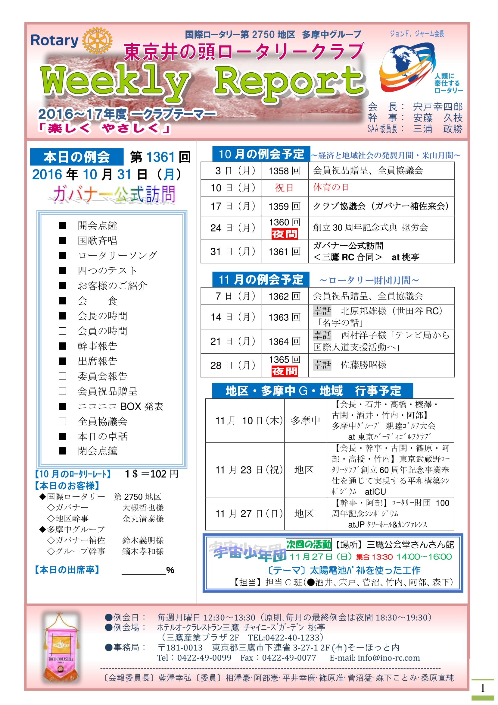 会長挨拶・例会のご案内・スケジュール等