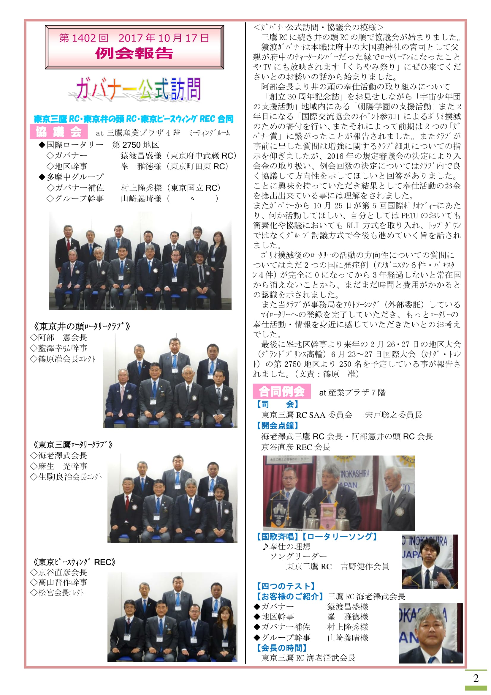 2017年10月23日発行(猿渡ガバナー公式訪問掲載)