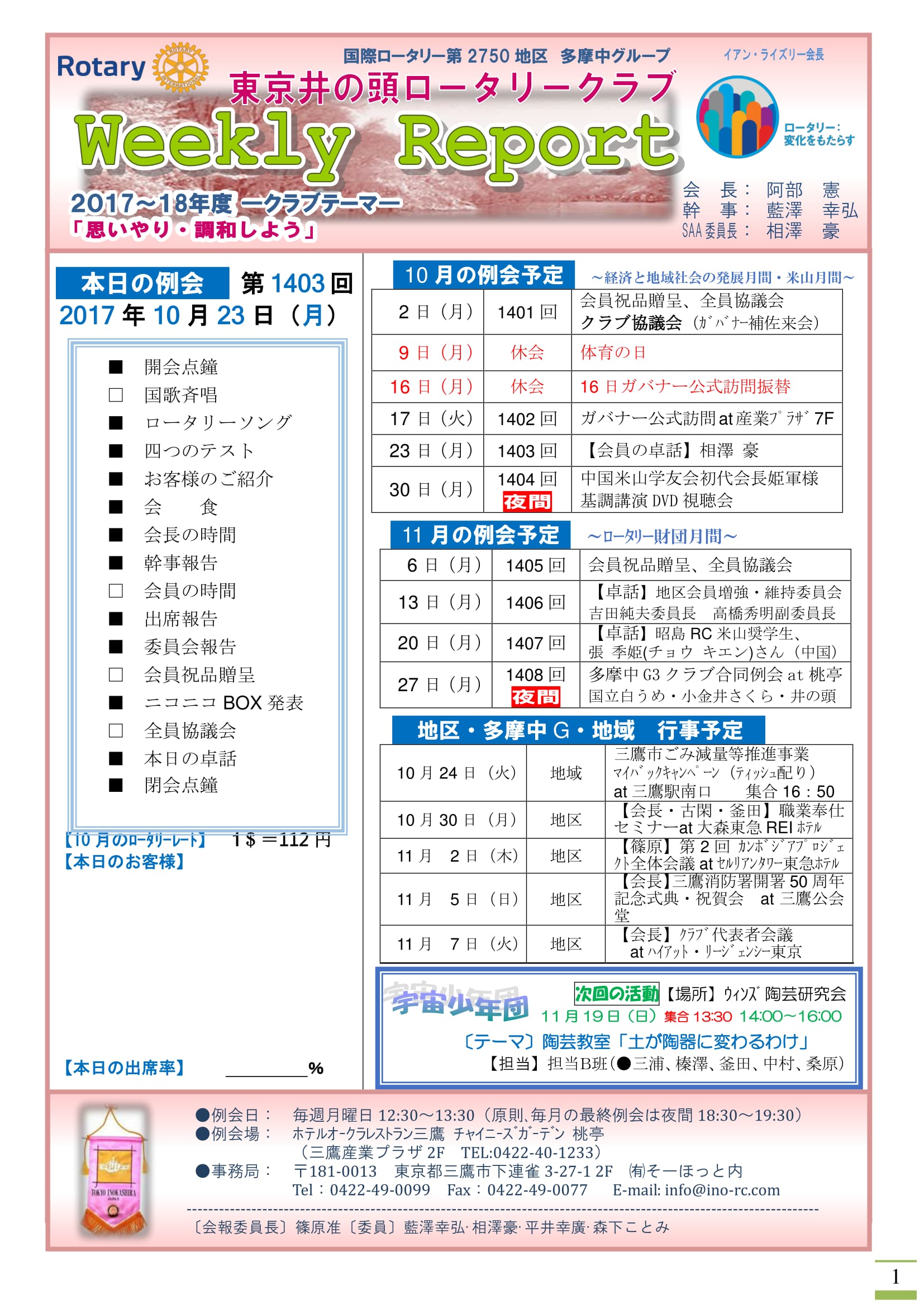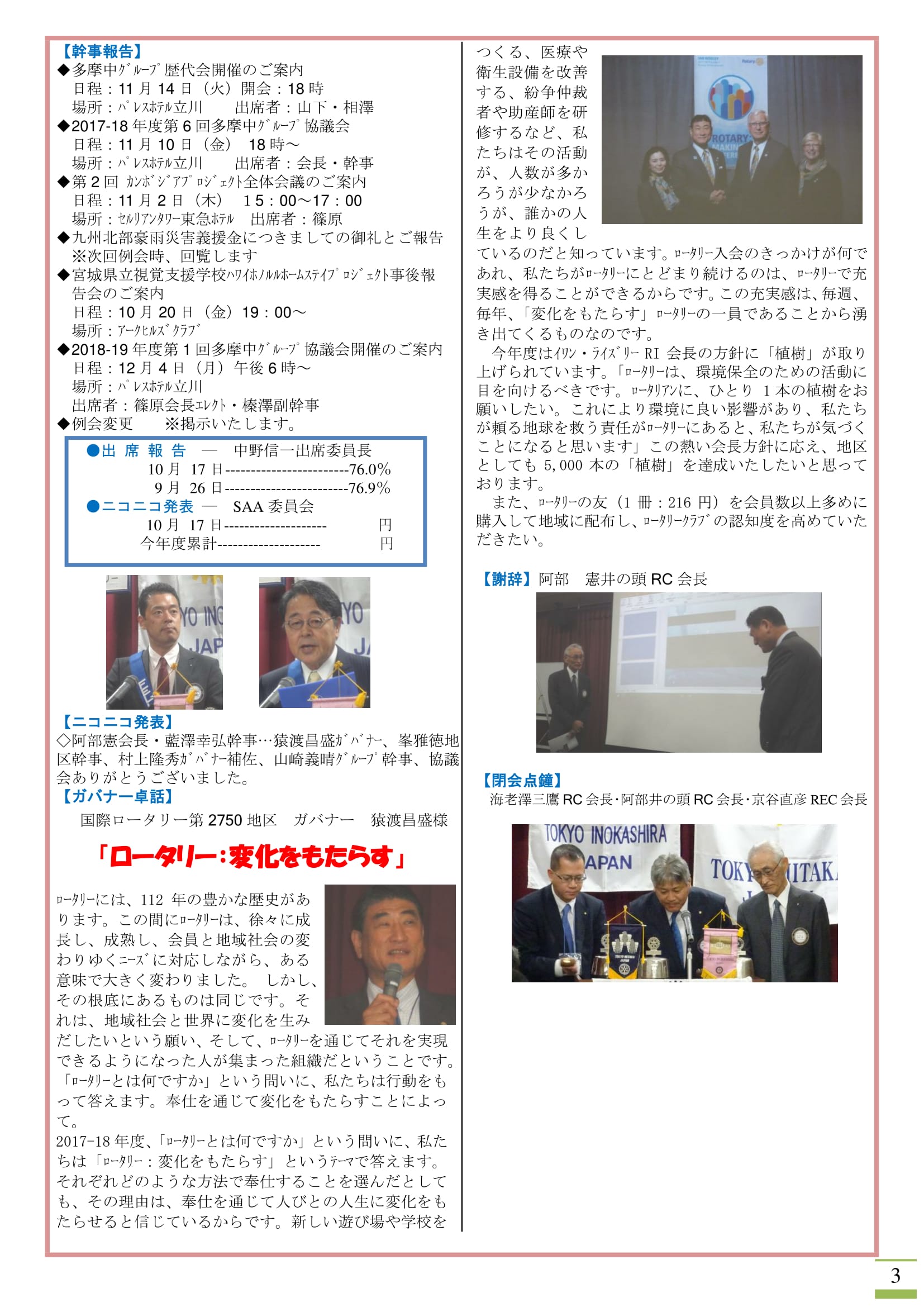 2017年10月30日発行(相澤豪会員卓話掲載)