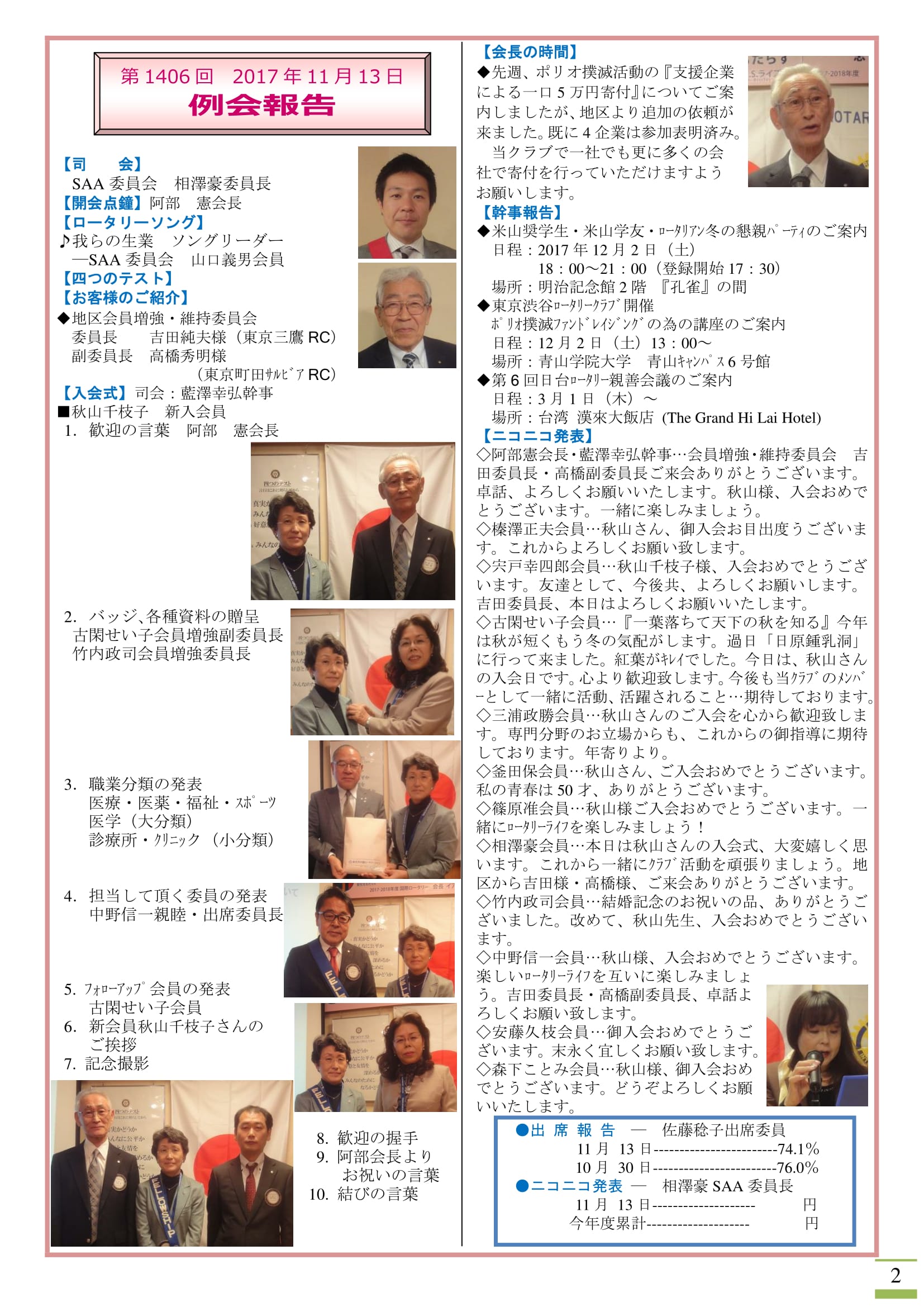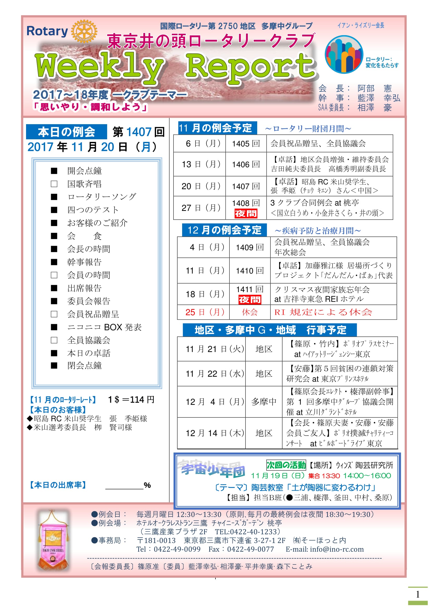 2017年11月20日発行(新会員入会式&地区会員増強委員長吉田様卓話)