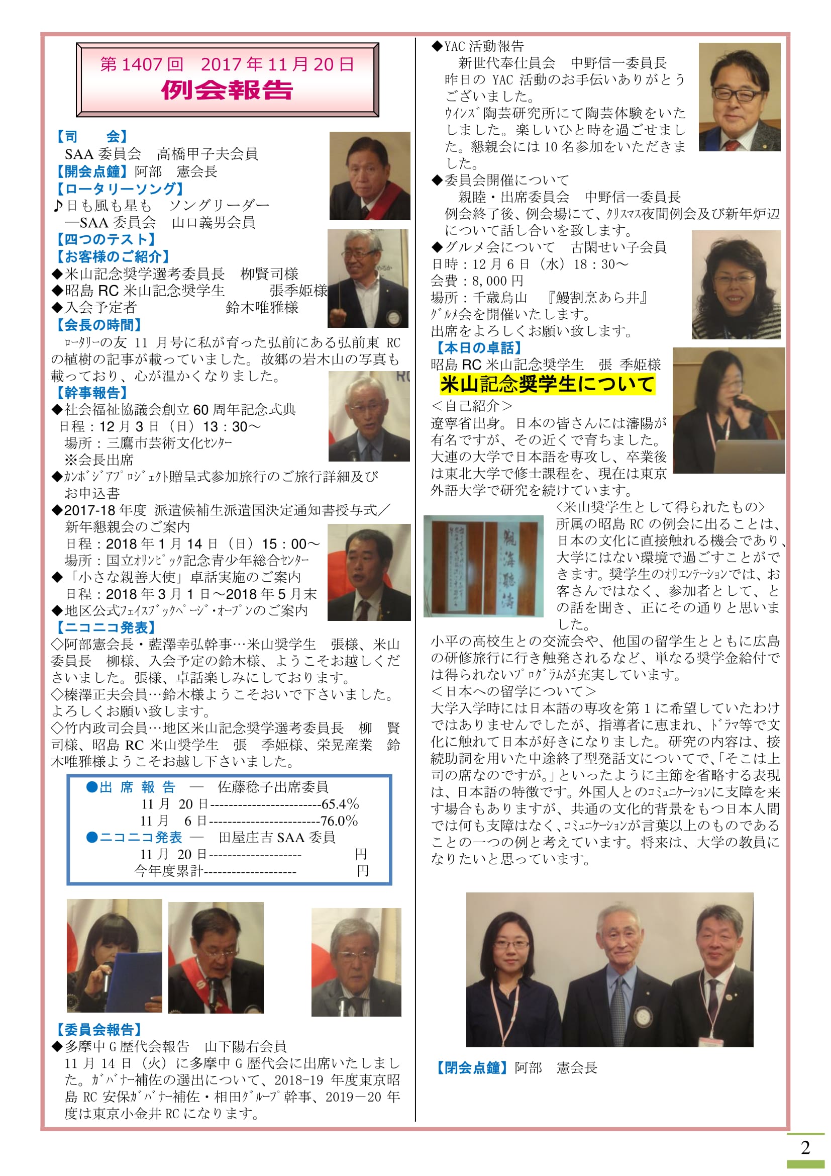 2017年11月20日発行(新会員入会式&地区会員増強委員長吉田様卓話)