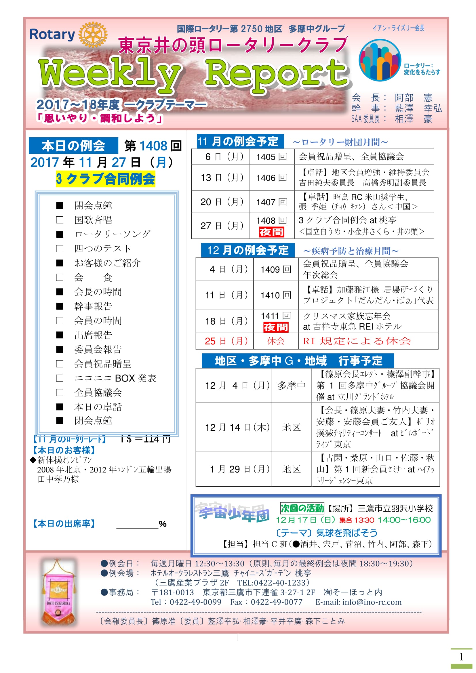 2017年12月4日発行(3クラブ合同例会)