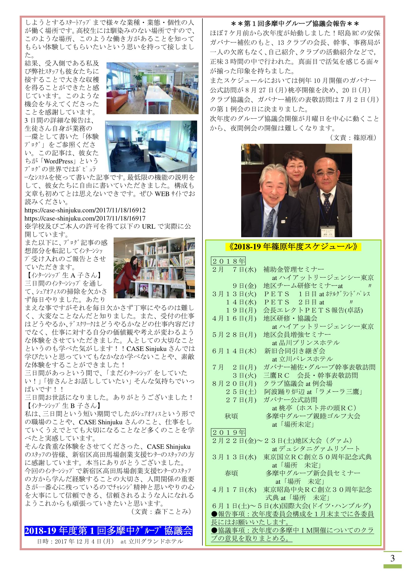 2017年12月11日発行(インターンシッフ報告&2018-19年篠原年度スケジュール)