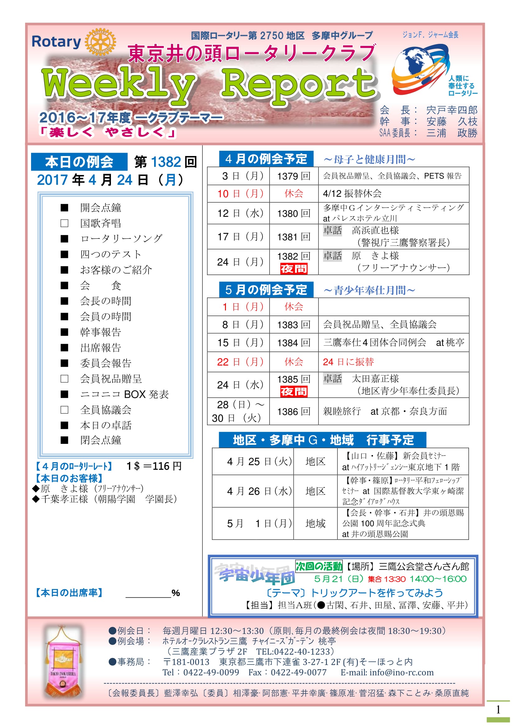 • 会長挨拶・例会のご案内・スケジュール等ロータリークラブ