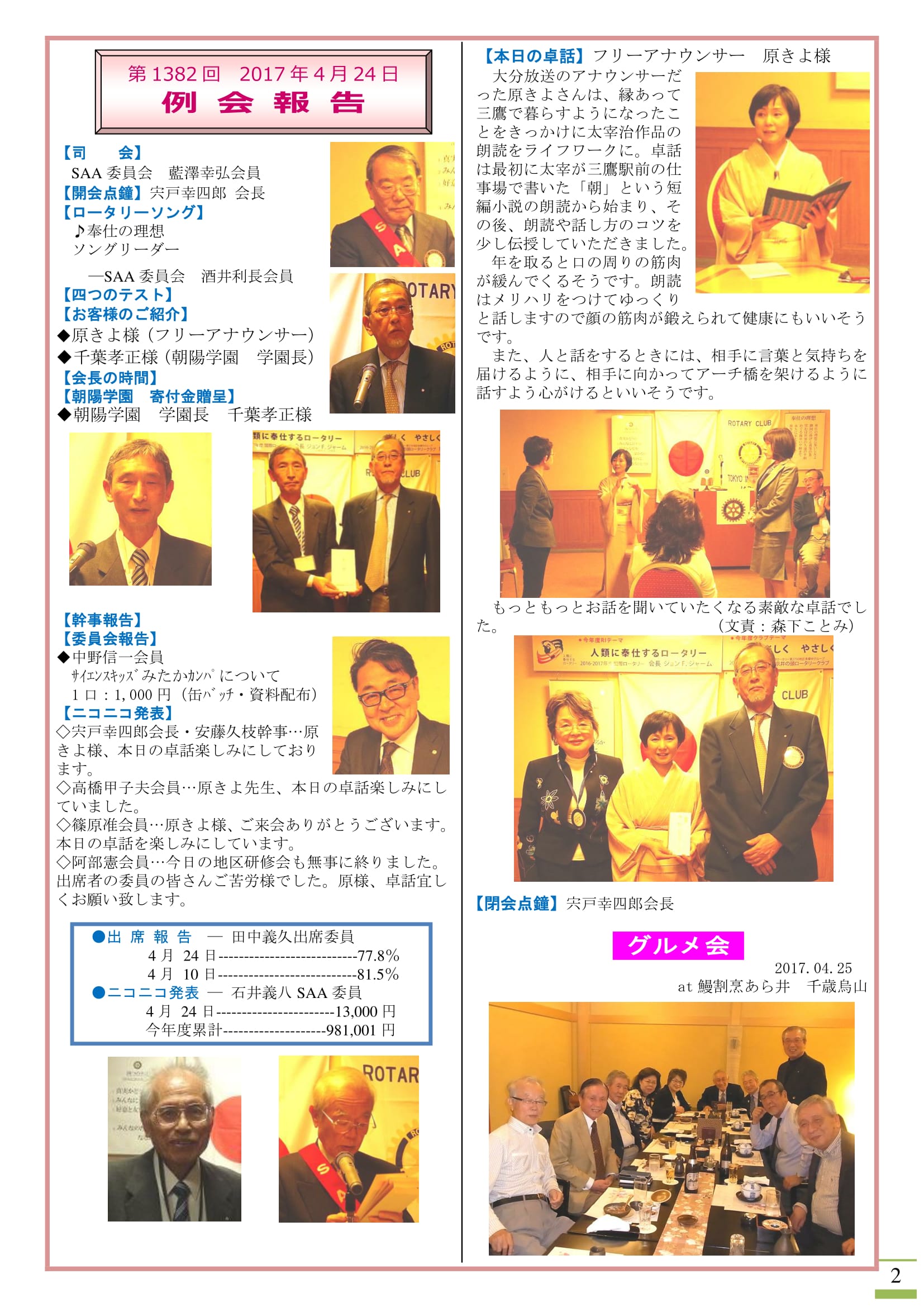 会長挨拶・例会のご案内・スケジュール等