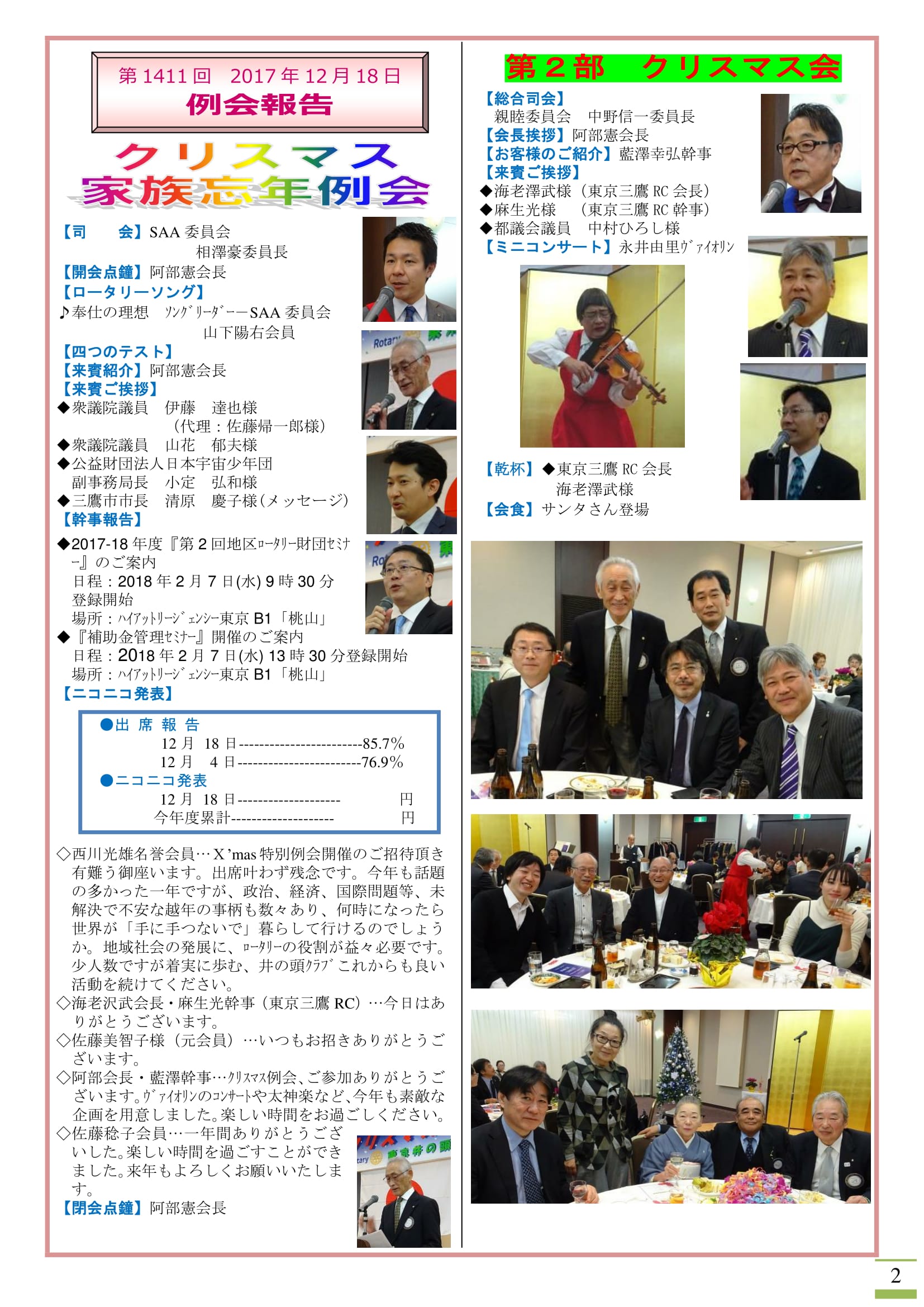 2017年12月18日発行(卓話:居場所づくりプロジェクト だんだん・ばぁ代表加藤雅江様)