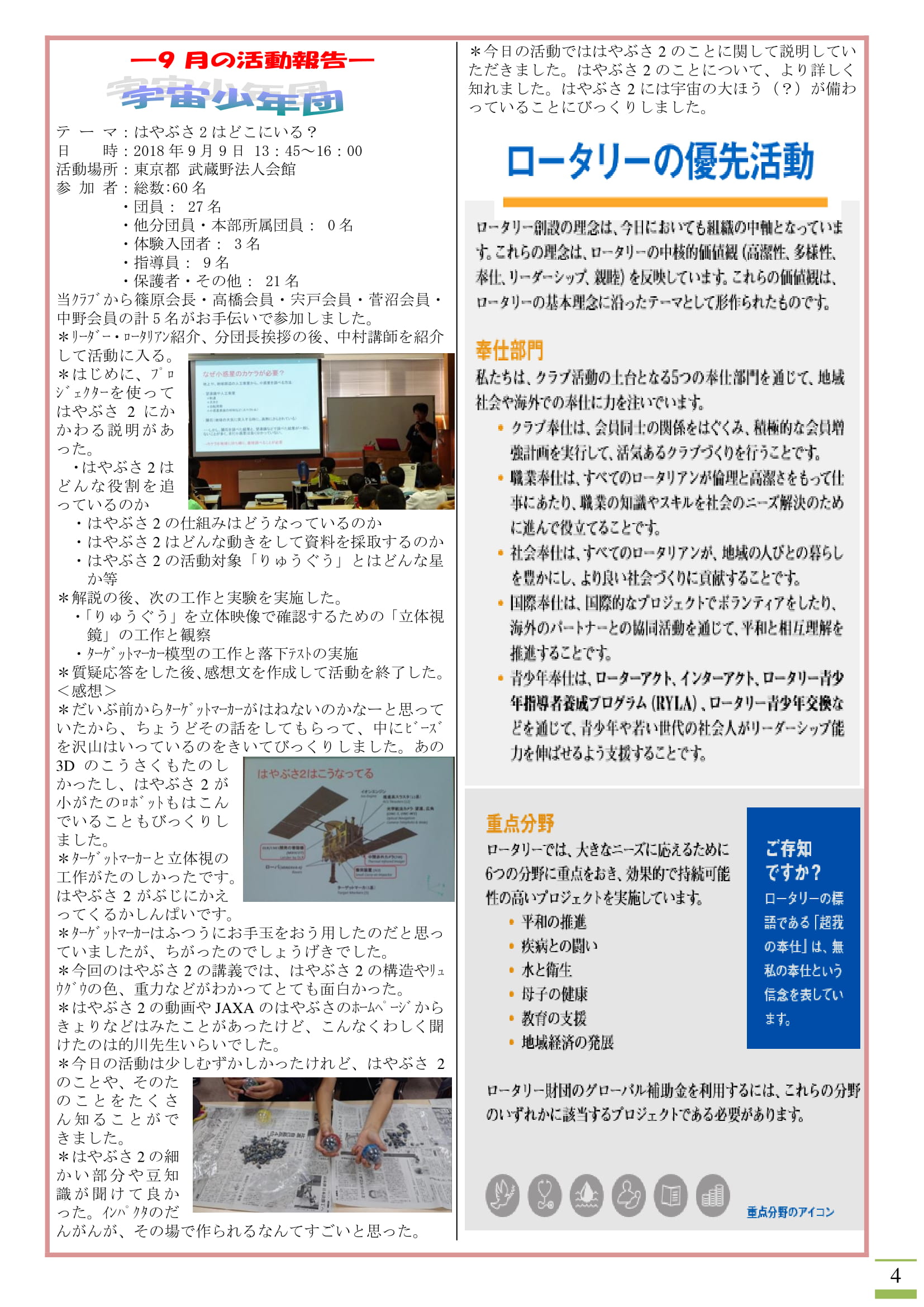 ★また日本宇宙少年団分団サイエンスキッズみたかの活動は「はやぶさ2は何処にいる?」でしたが、9月22日に小惑星探査機「はやぶさ2」から分離したMINERVA(ミネルバ:ローマ神話 「知の女神」)-II1(ローバ-1A 、ローバ-1Bの2機)が小惑星Ryugu(リュウグウ)に着陸したこともあり、大変タイムリーな内容となっています。