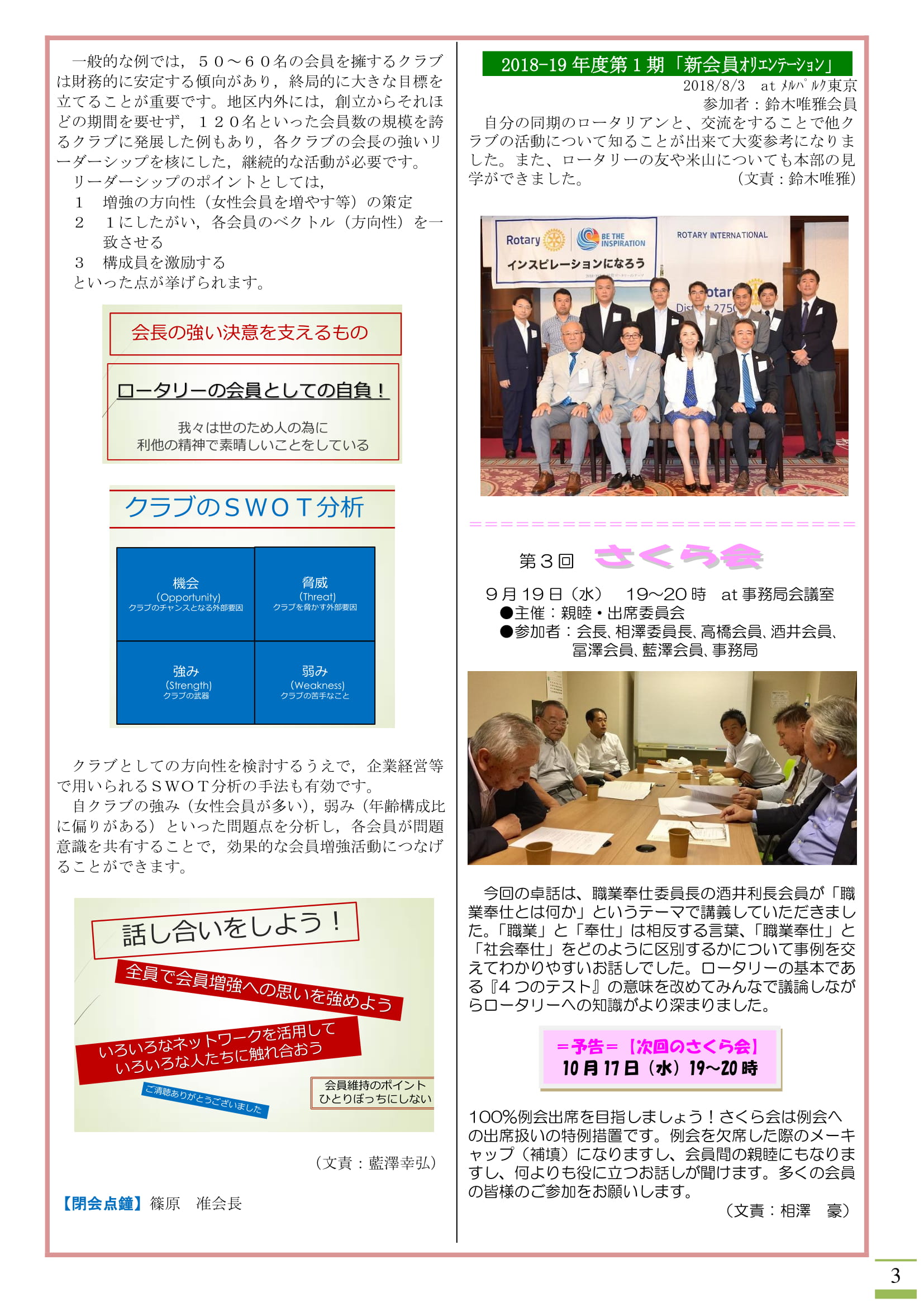 ★9月10日の例会は萩原道雄地区会員増強・維持委員長にご来会いただき、「時代の変化と会員基盤の強化」について卓話をいただきました。ありがとうございました。