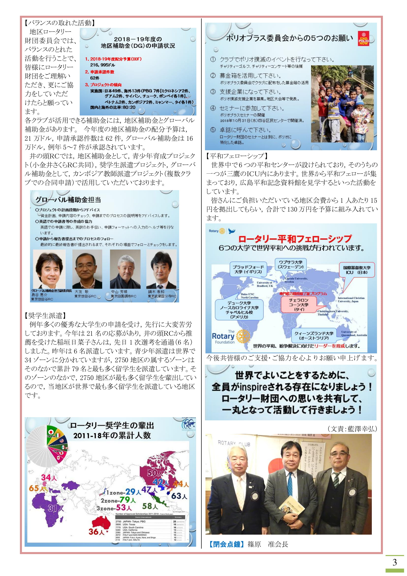 2018年12月3日発行(3クラブ合同例会:国立白うめRC、小金井さくらRC、井の頭RC&第1回クラブ代表者会議&第9回多摩中グループ協議会&「ロータリーデー」について:「落語を楽しむ会」)