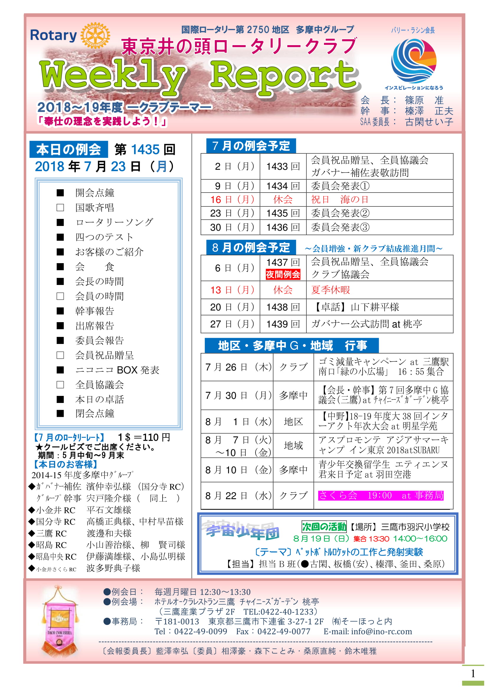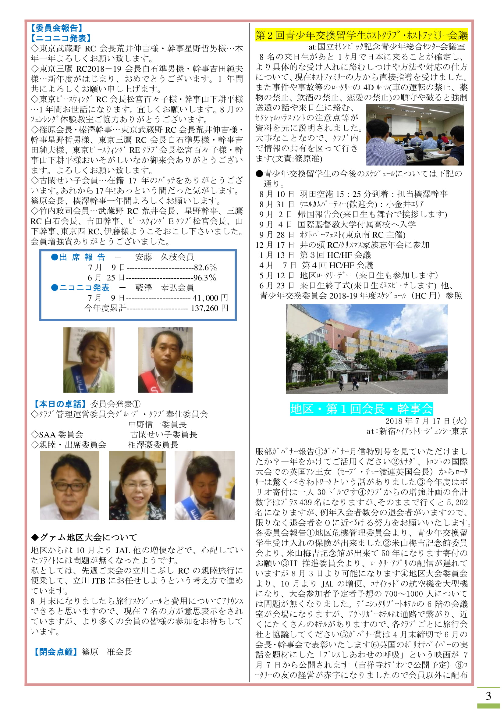 東京ピースウィングロータリーEクラブ 松宮百々子会長、山下耕平幹事、