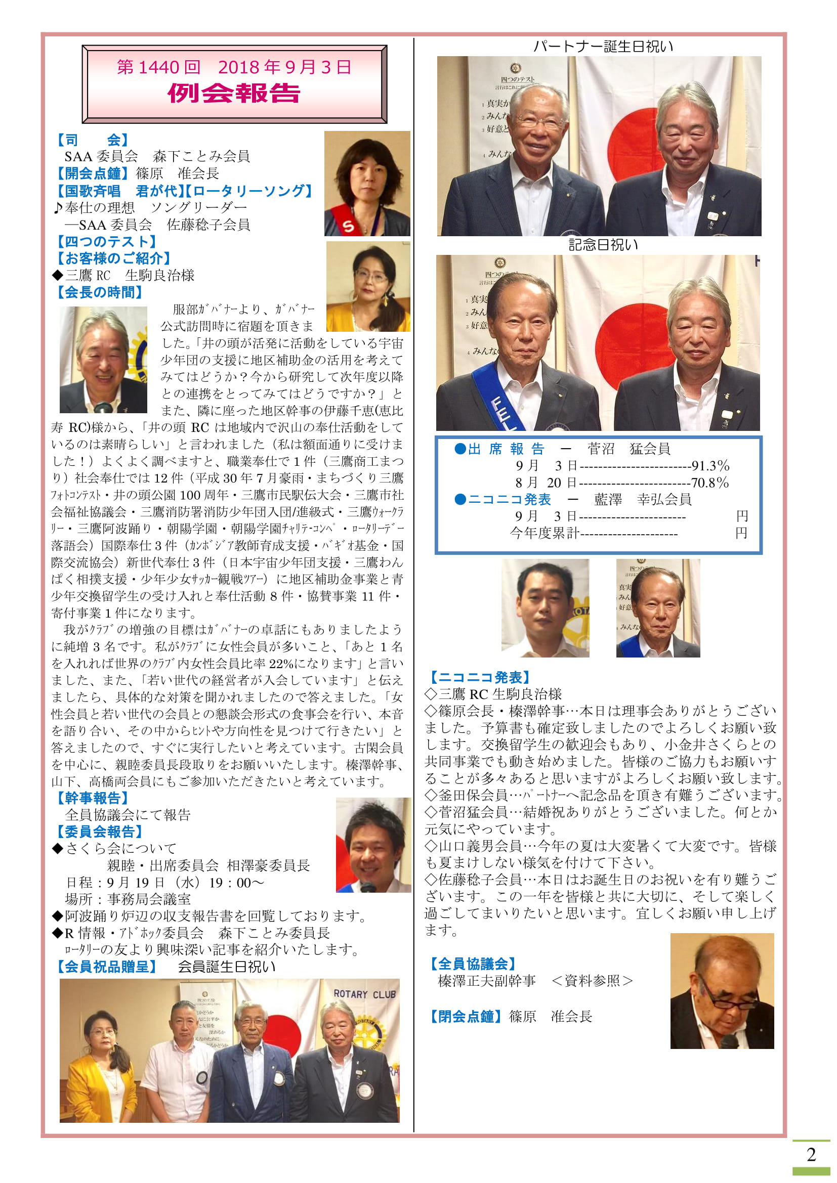 ← 2018年9月3日発行(ガバナー公式訪問)