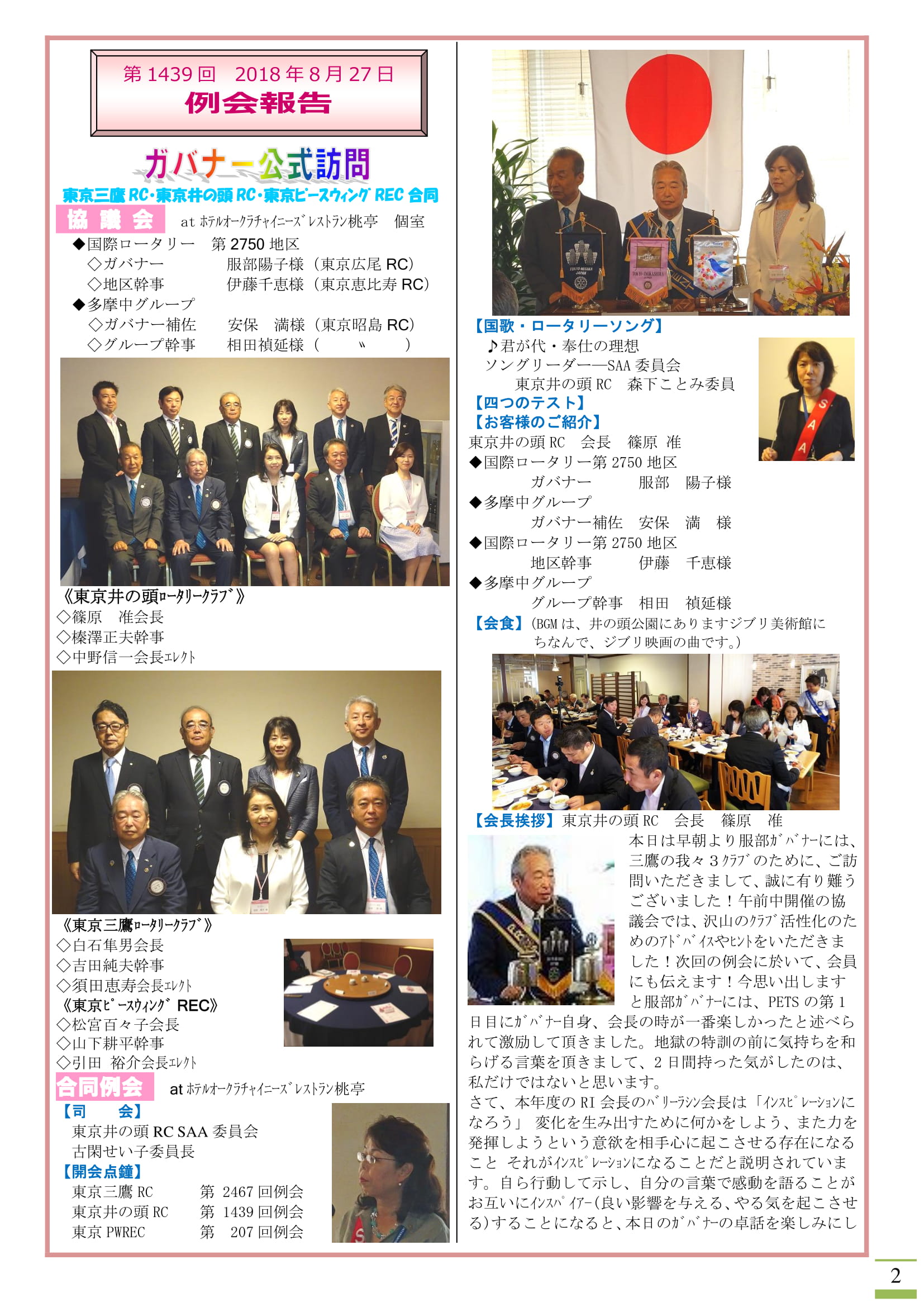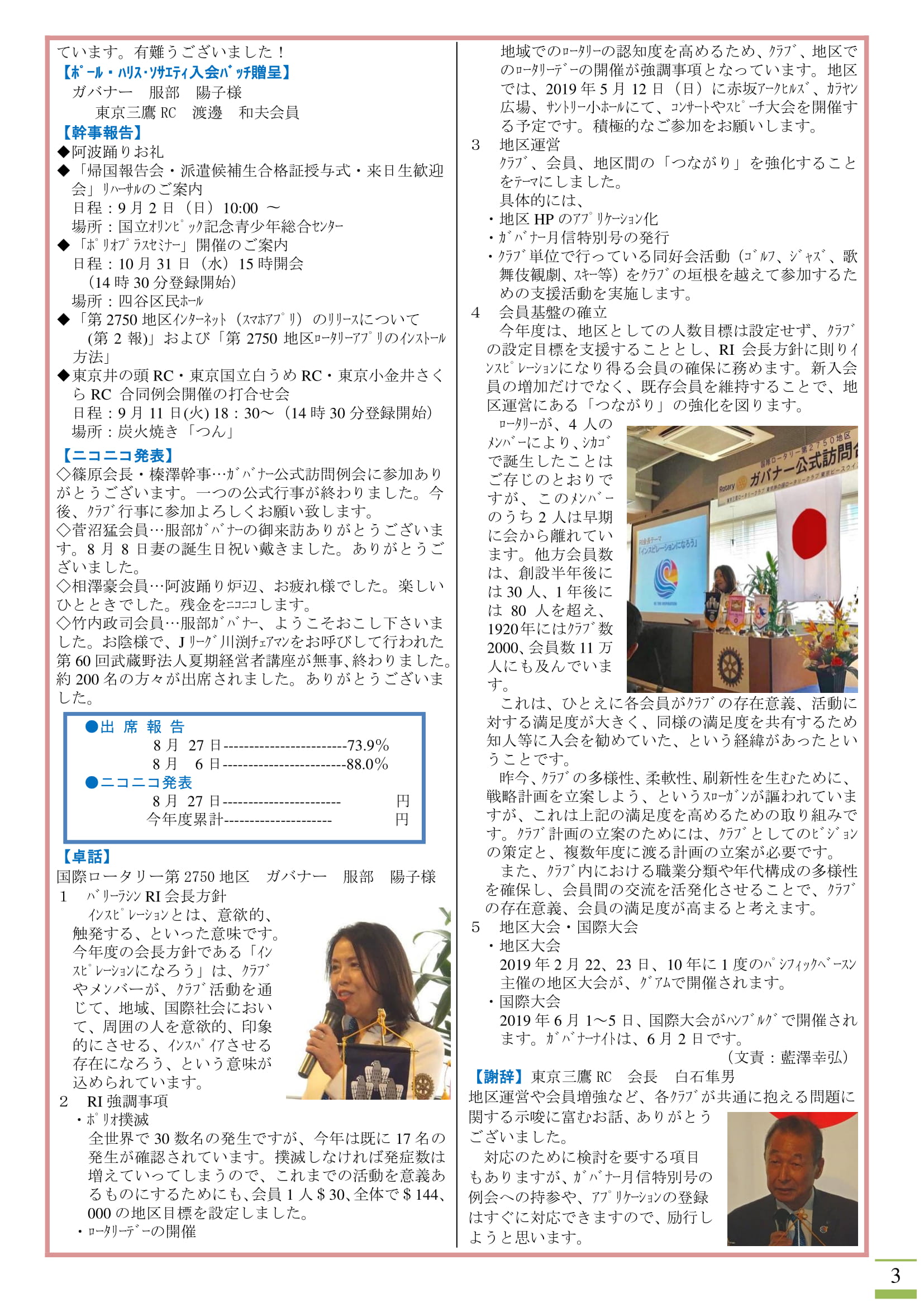 2018年9月3日発行(ガバナー公式訪問)