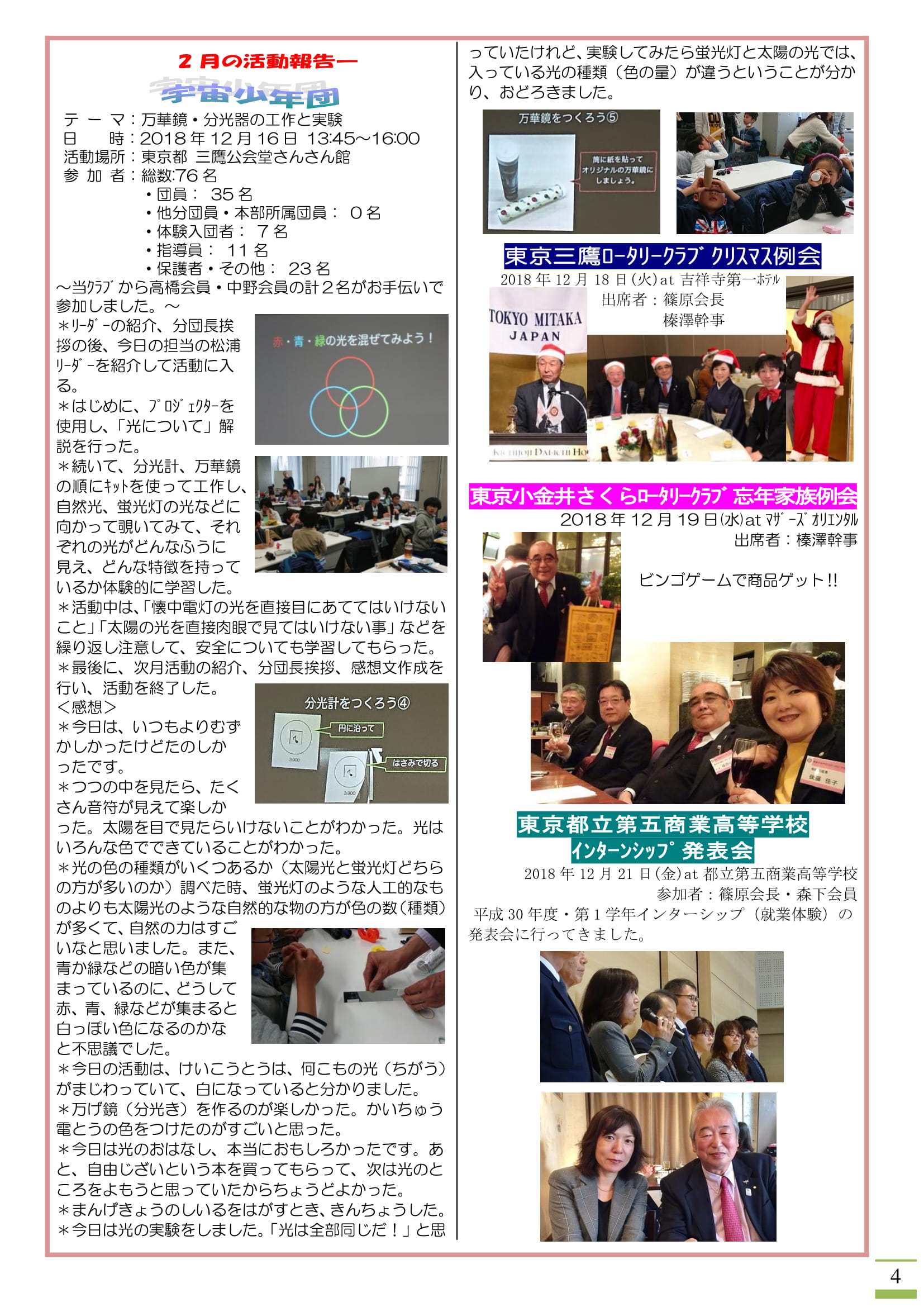 今年は青少年交換留学生エティエン君と東京小金井さくらRC゙ホストファミリーの方々やグローバル補助金奨学生に選ばれた稲垣日菜子さんにもご参加いただき、例年になく和やかな会となりました。ご多用の中、ご参加いただきました参加者の皆様、誠にありがとうございました。