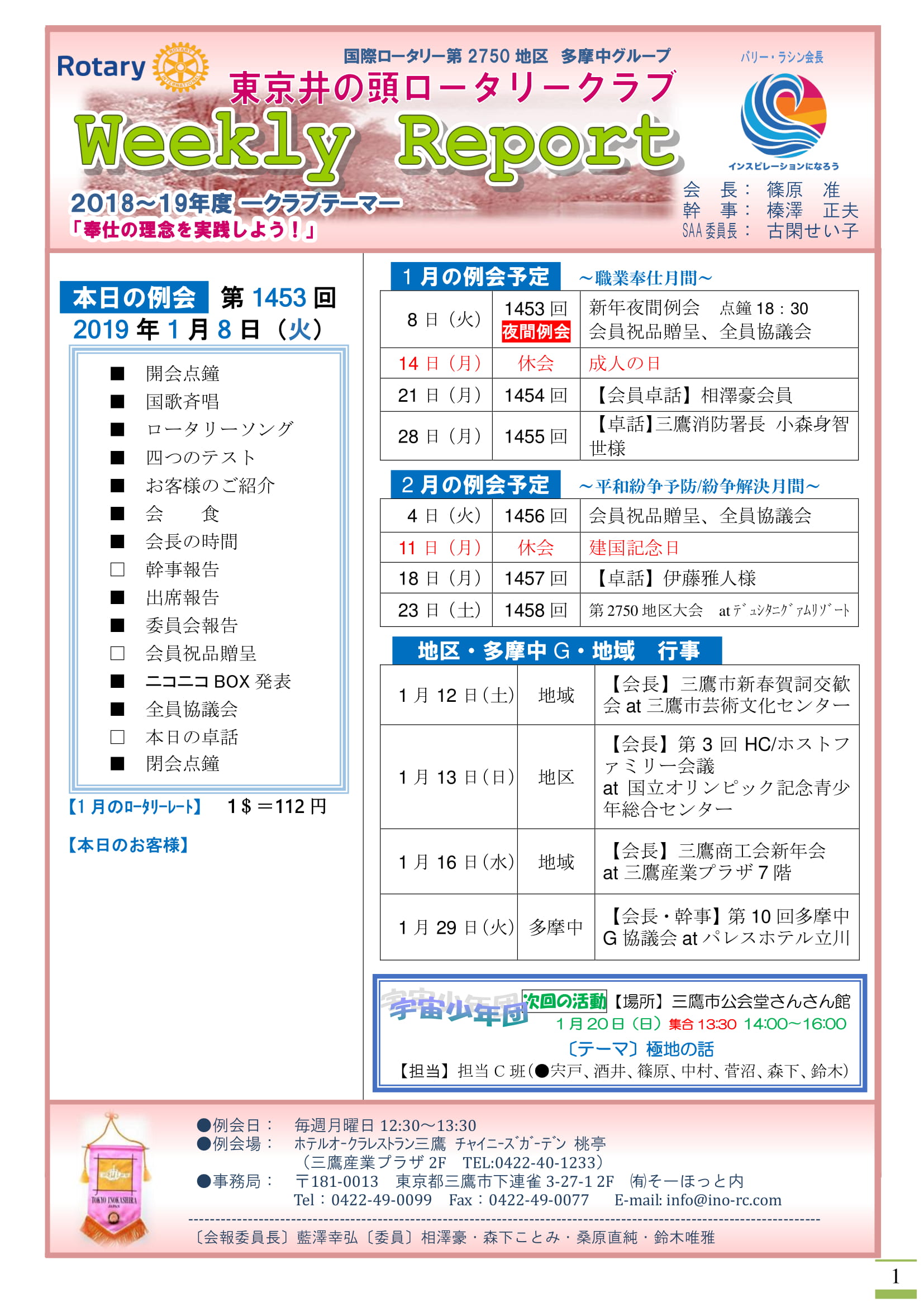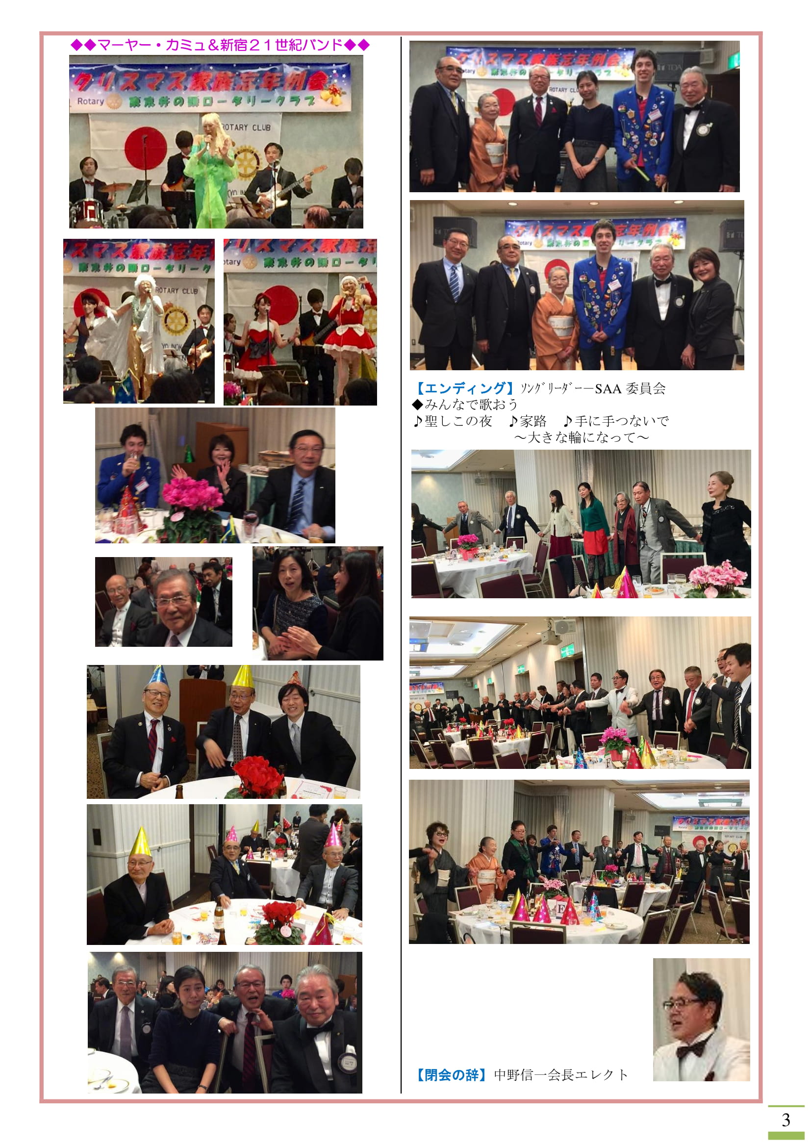 今年は青少年交換留学生エティエン君と東京小金井さくらRC゙ホストファミリーの方々やグローバル補助金奨学生に選ばれた稲垣日菜子さんにもご参加いただき、例年になく和やかな会となりました。ご多用の中、ご参加いただきました参加者の皆様、誠にありがとうございました。