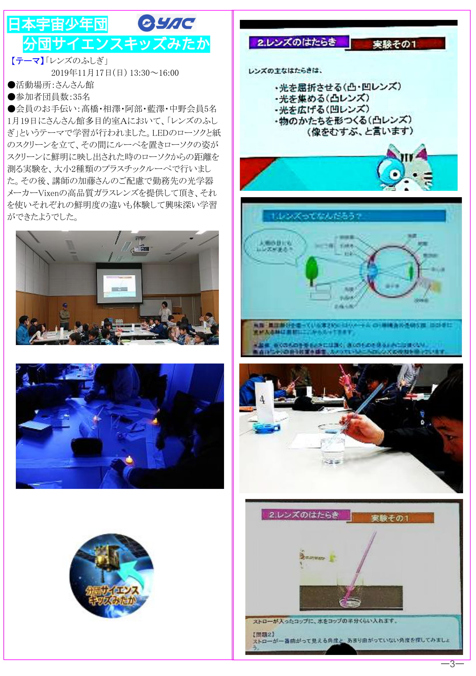 • 2020年1月27日発行(サイエンスキッズみたかへ支援金贈呈&日本宇宙少年団分団サイエンスキッズみたか活動「レンズの不思議」&危機管理セミナー報告)東京都三鷹市 東京井の頭ロータリークラブ