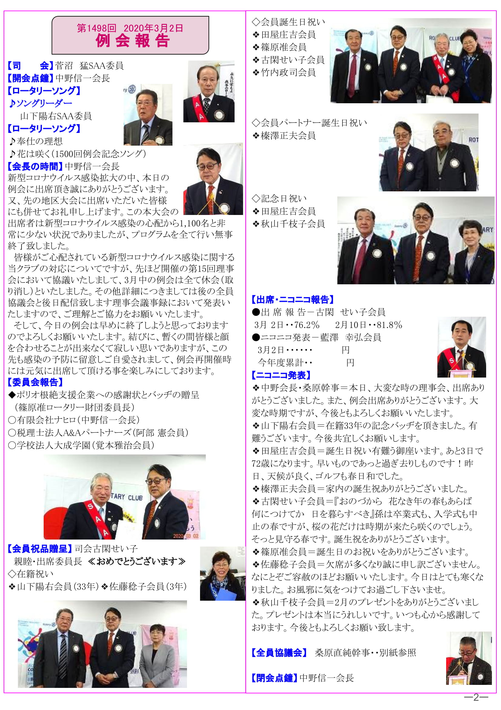 2020年6月15日発行(1500回記念例会&1499回全員協議会) →