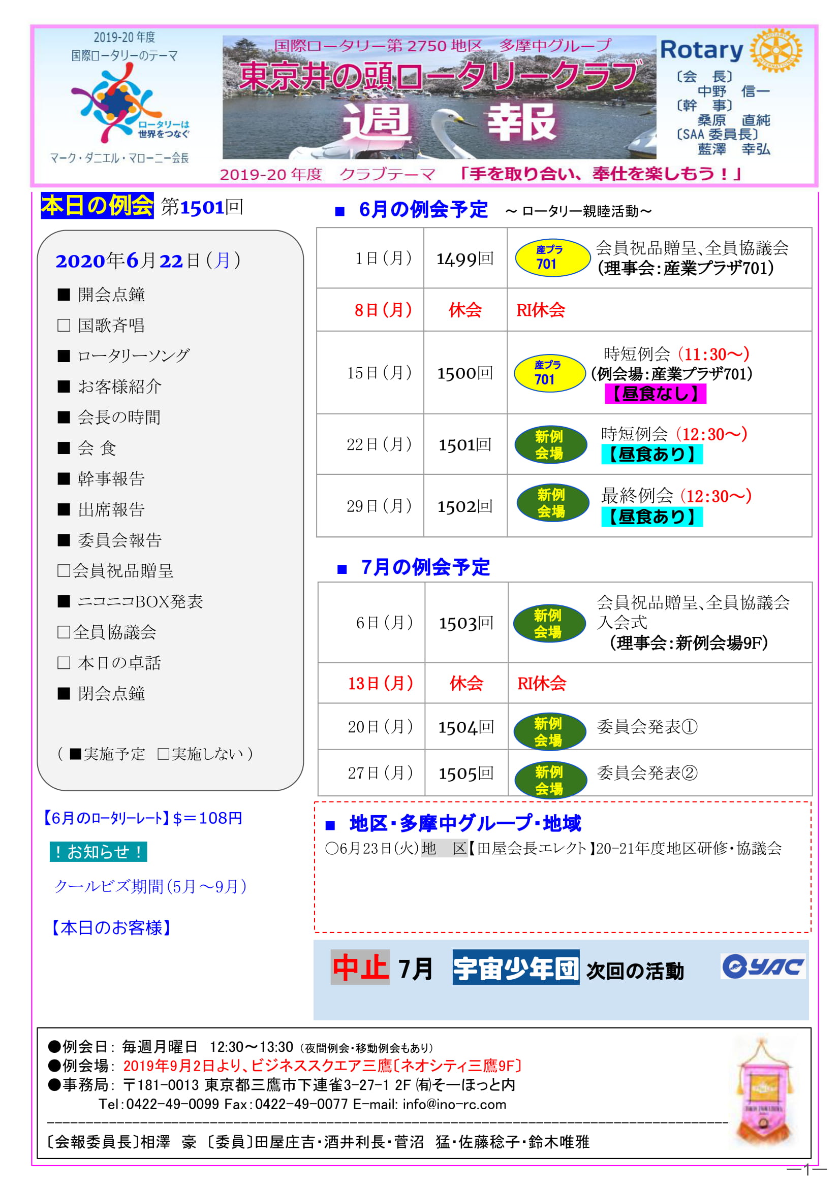 2020年6月15日発行(1500回記念例会&1499回全員協議会)