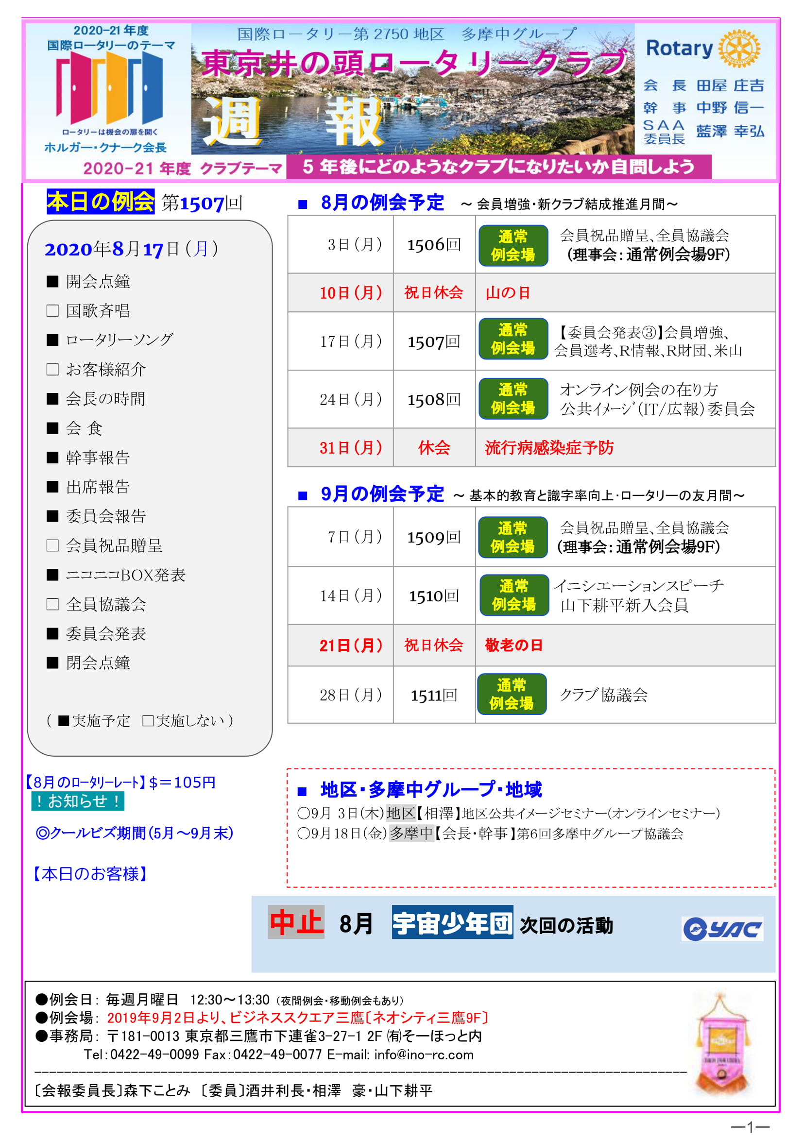 2020年8月3日発行(委員会発表&第5回多摩中グループ協議会報告&篠原 准会員の「こぶし」便り)