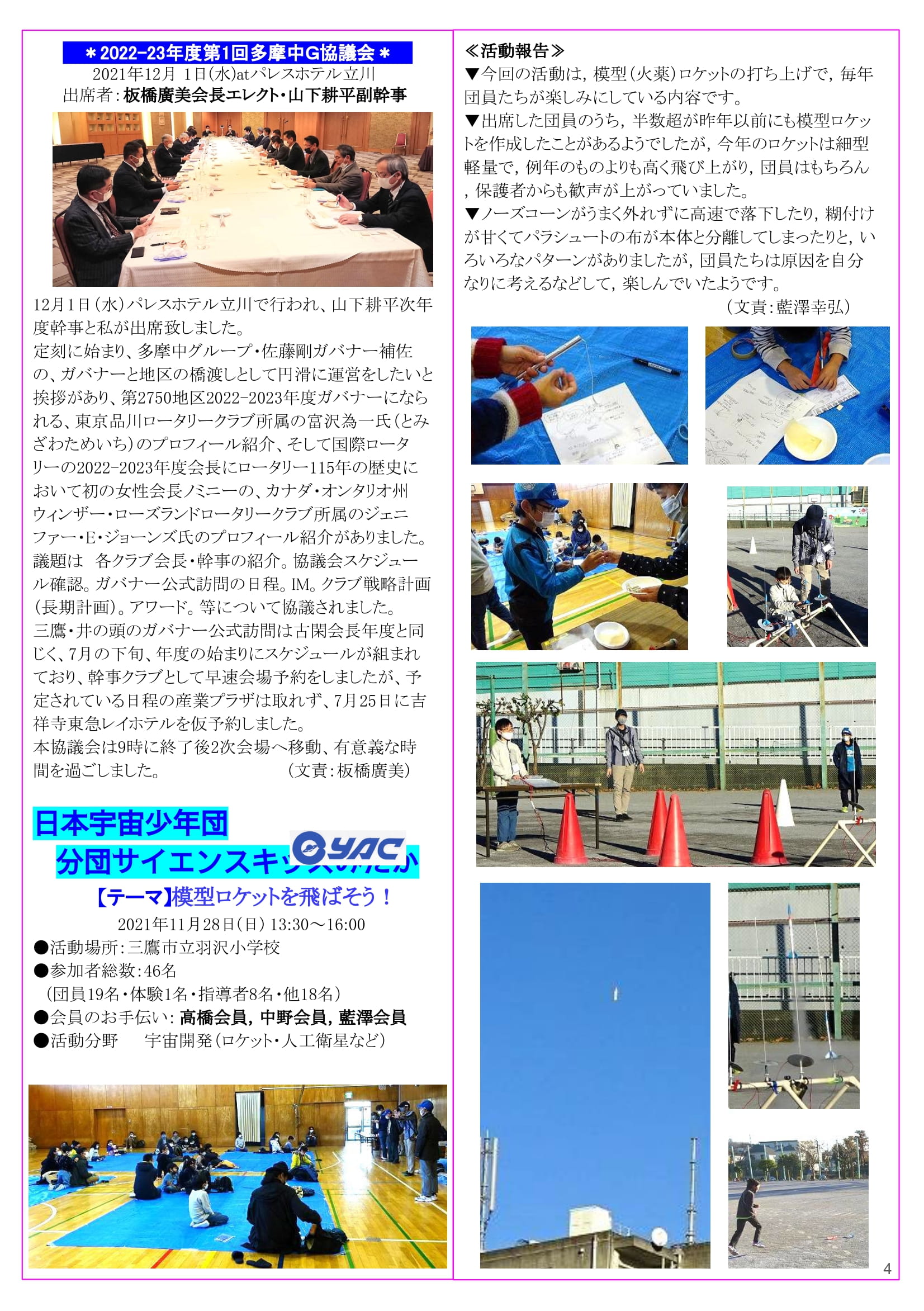 2021年12月6日発行(2022-23年度第1回多摩中G協議会&日本宇宙少年団分団サイエンスキッズみたか)三鷹市 東京井の頭ロータリークラブ
