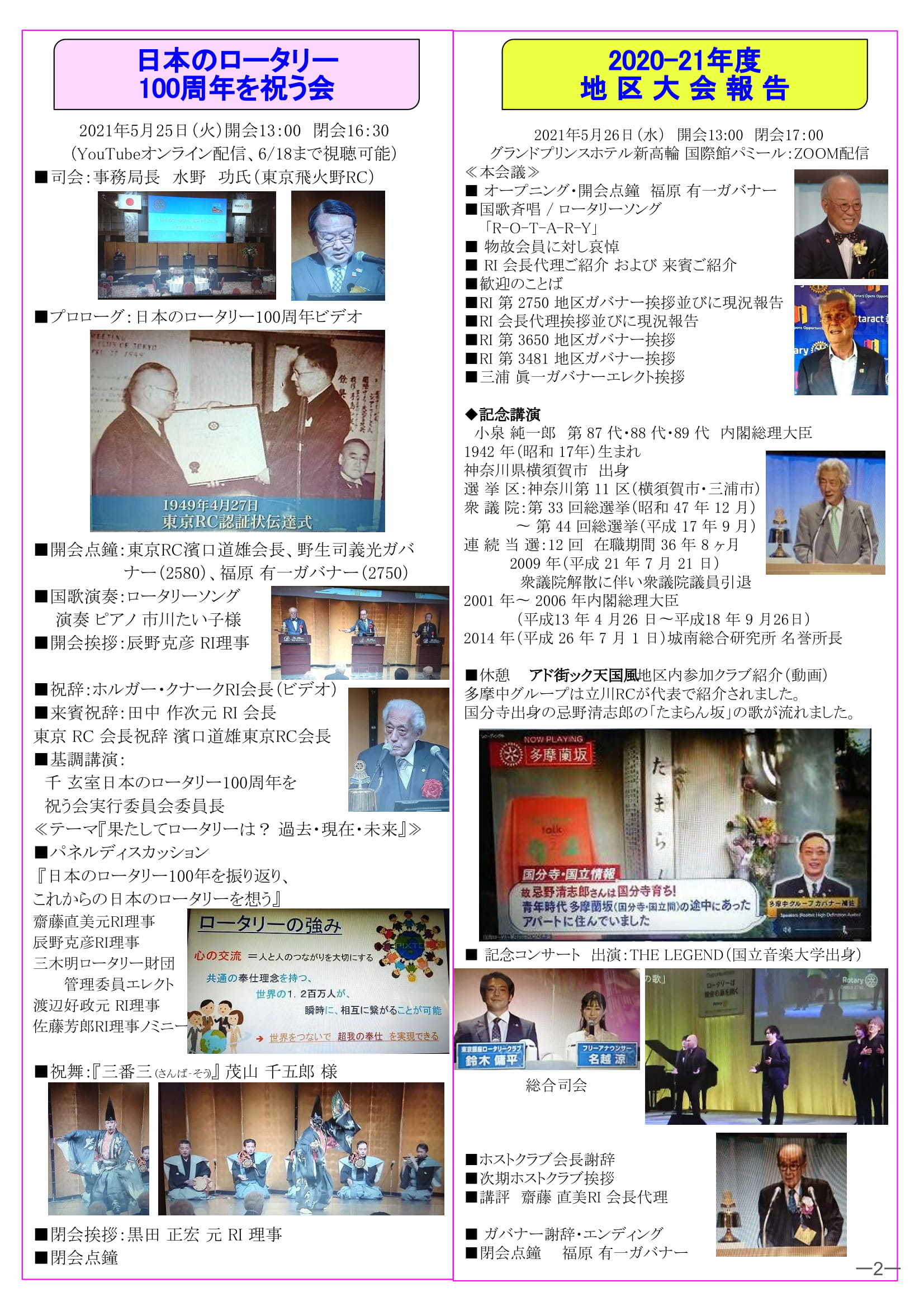 2021年6月21日発行(日本のロータリー100周年を祝う会&2020-21年度地区大会報告)三鷹市 東京井の頭ロータリークラブ