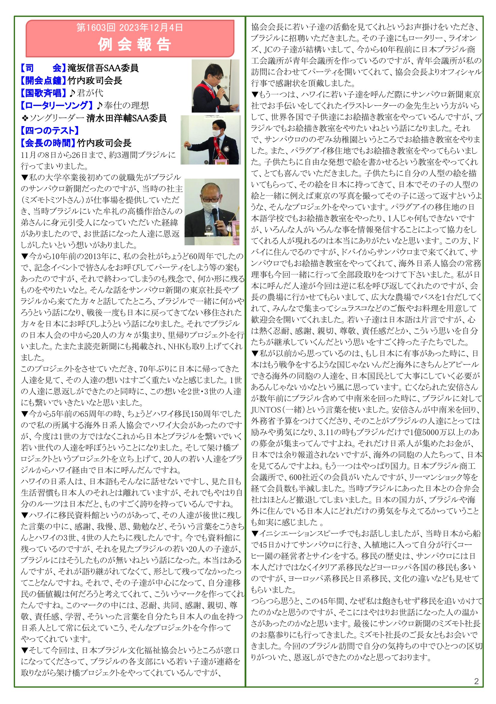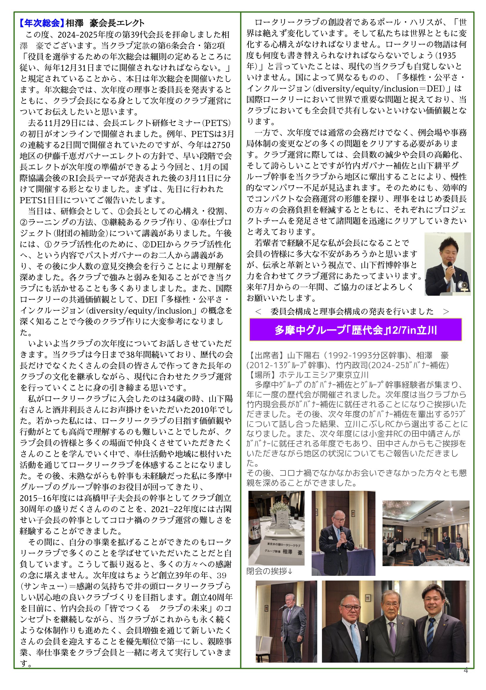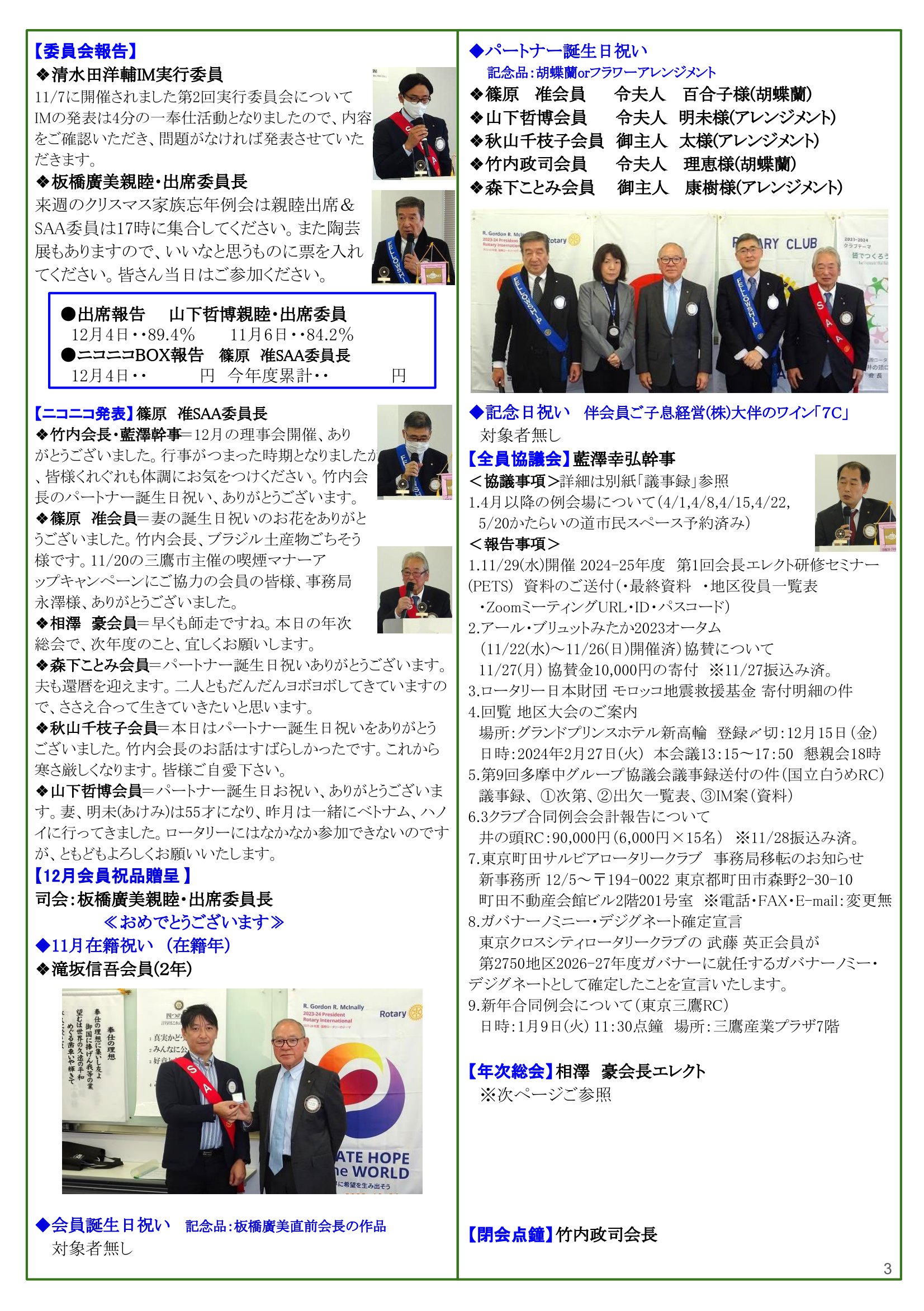 2023年12月4日発行(3クラブ合同例会報告(小金井さくらRC&国立白うめRC&井䛾頭RC)) 東京都三鷹市 東京井の頭ロータリークラブ
