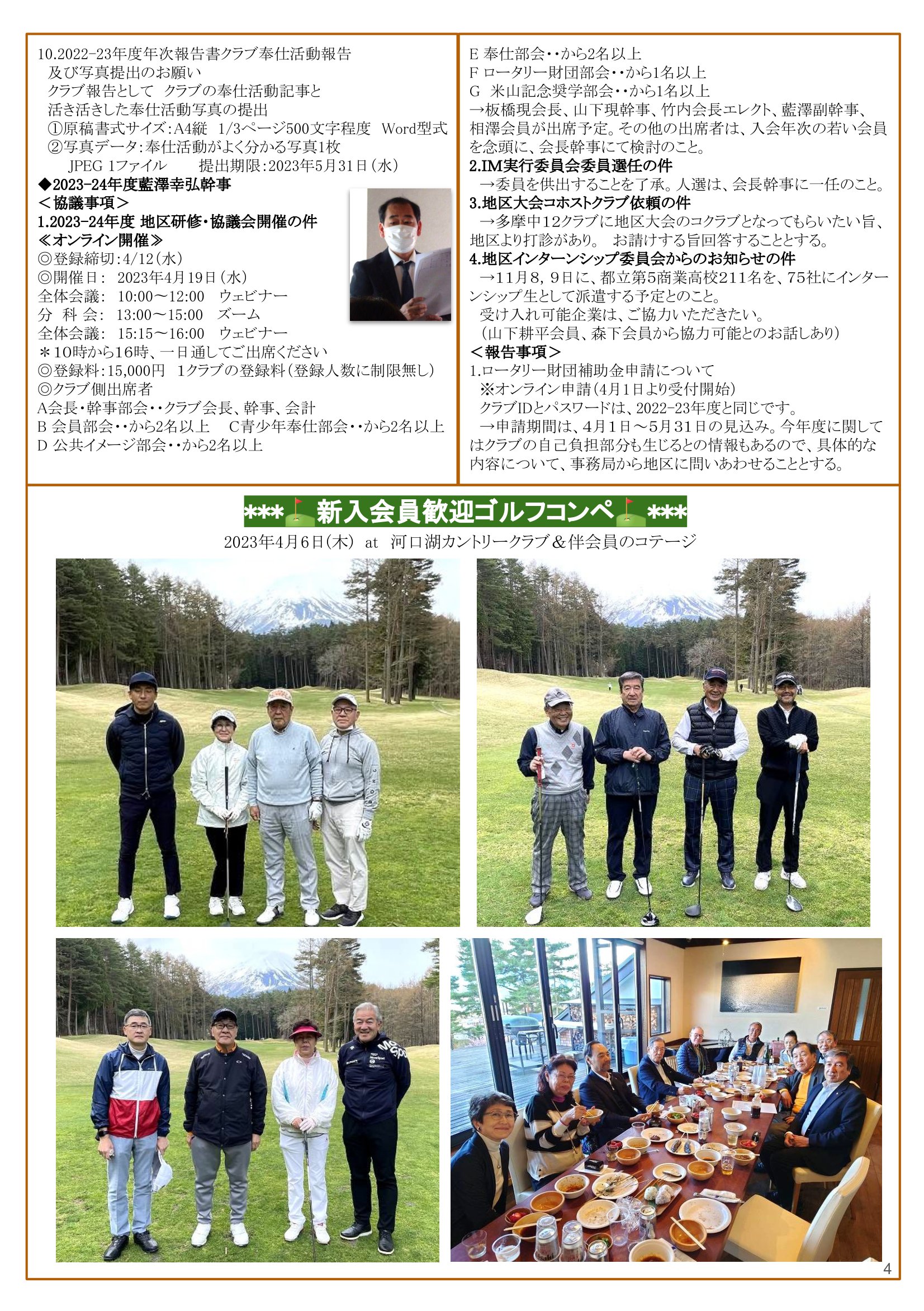 2023年4月10日発行(新入会員歓迎ゴルフコンペ) 東京都三鷹市 東京井の頭ロータリークラブ
