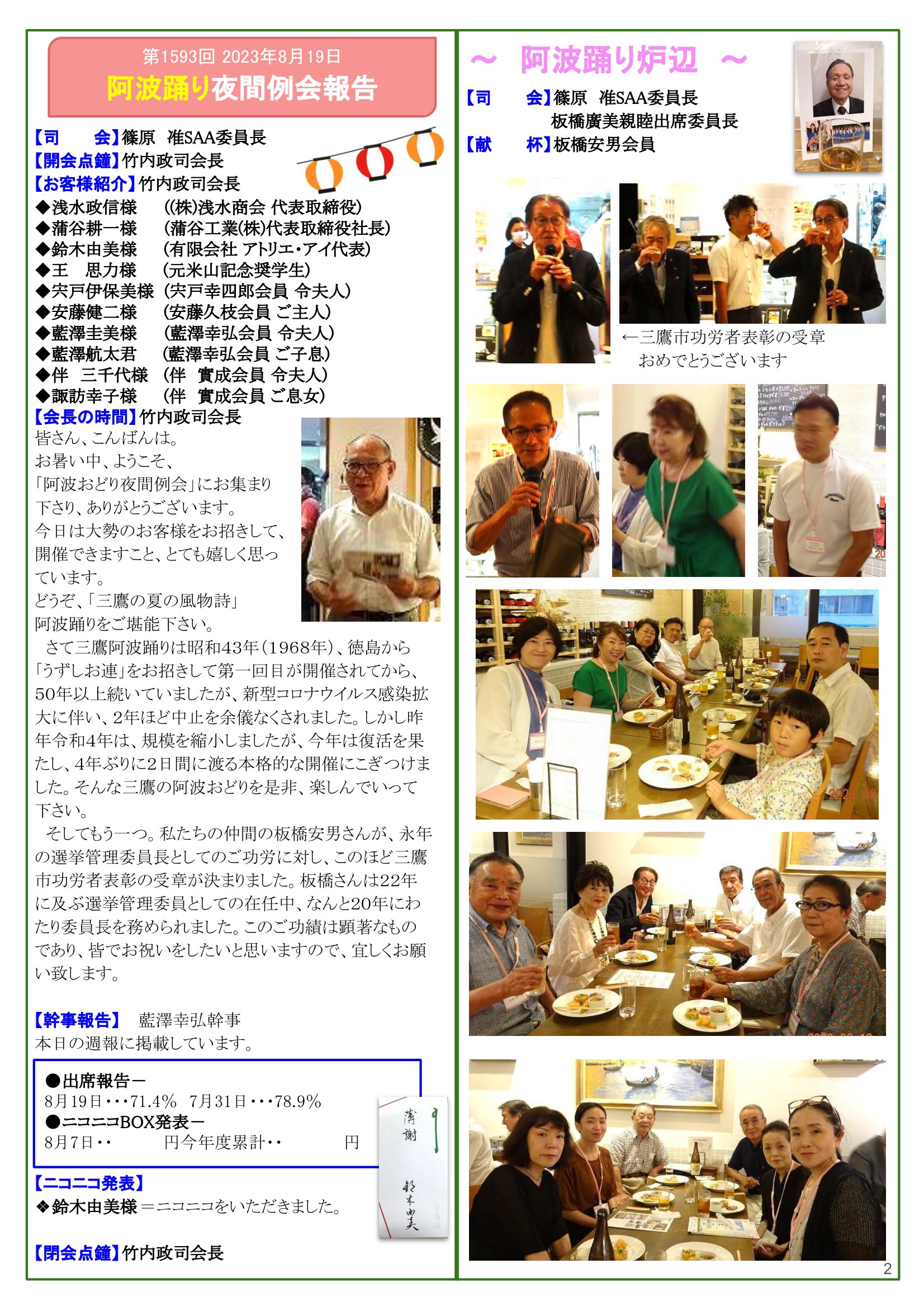 ← 2023年8月19日発行(髙橋甲子夫会員 追悼の想い&令和5年度みたか平和の集い) 東京都三鷹市 東京井の頭ロータリークラブ