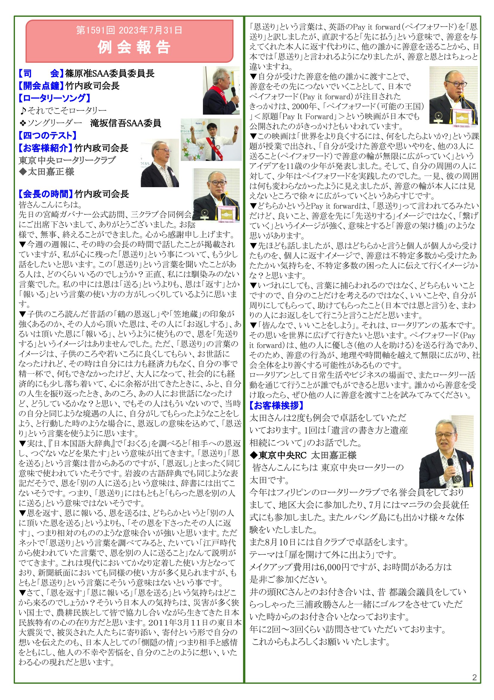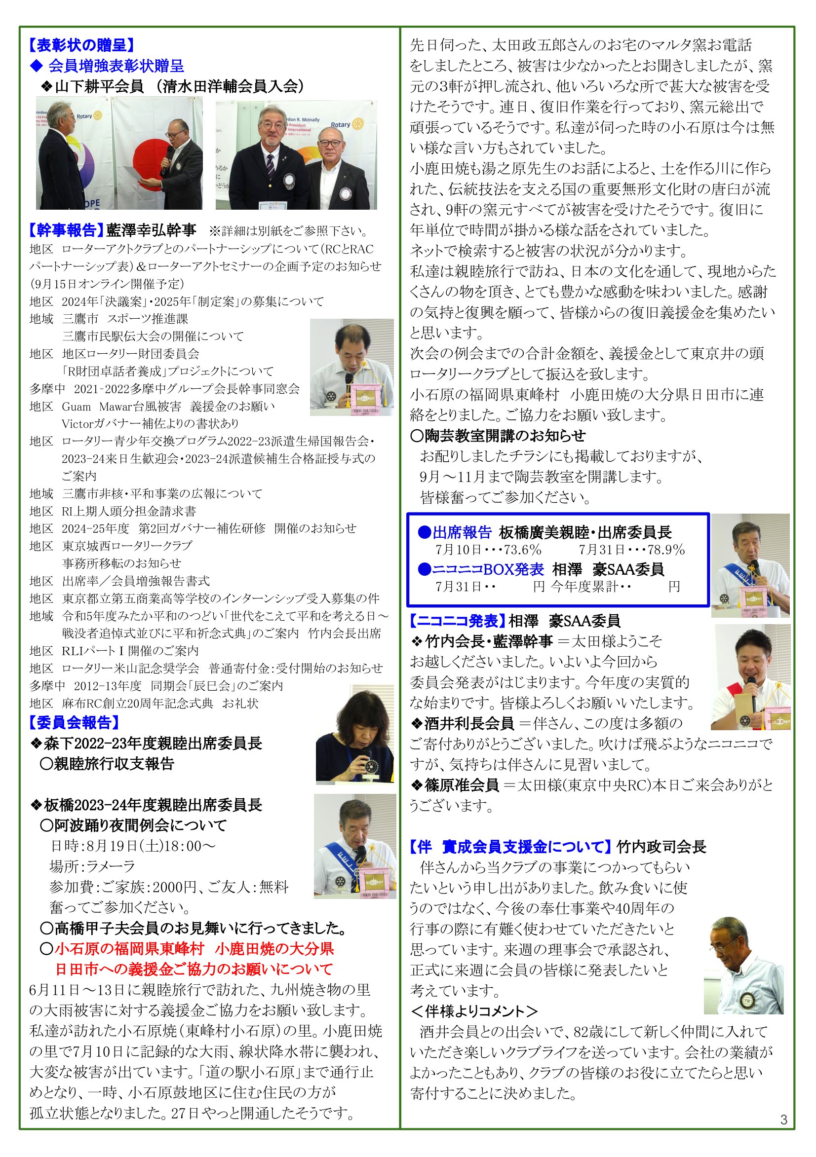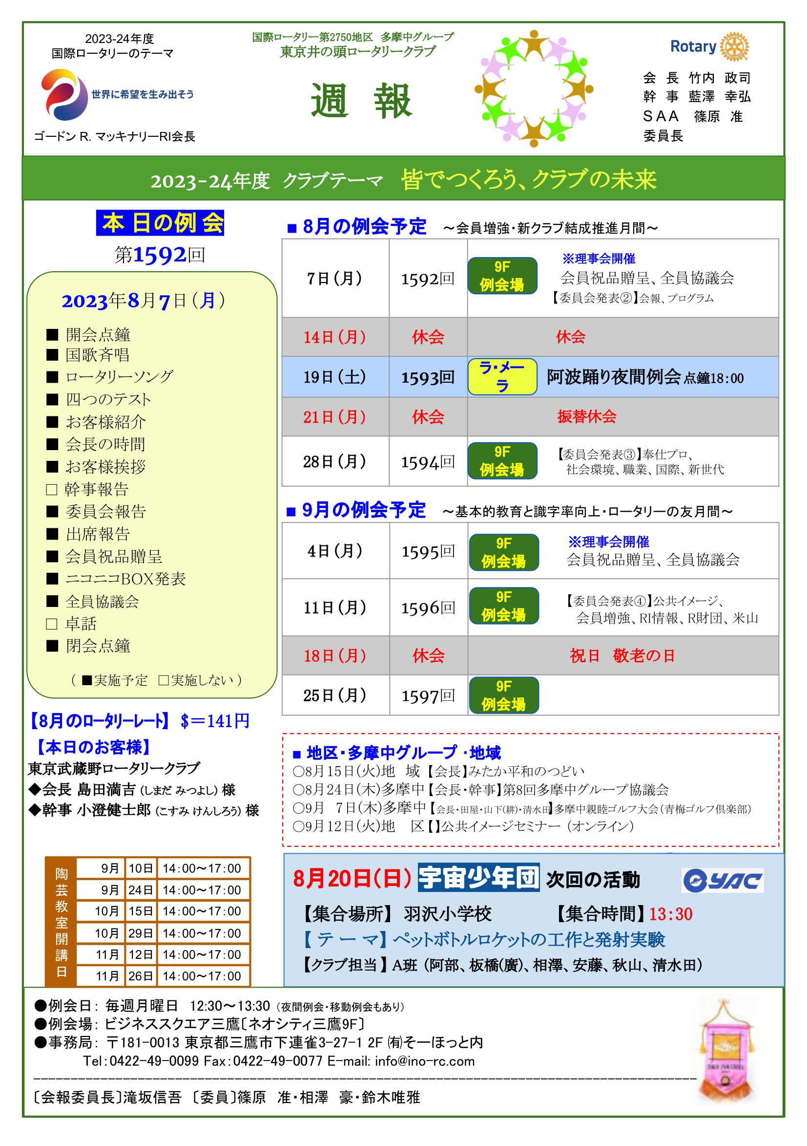 • 2023年8月7日発行 東京都三鷹市 東京井の頭ロータリークラブ